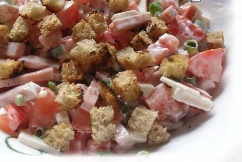 Ингредиенты для приготовления Салат с помидором, копченым сыром и сухариками:
