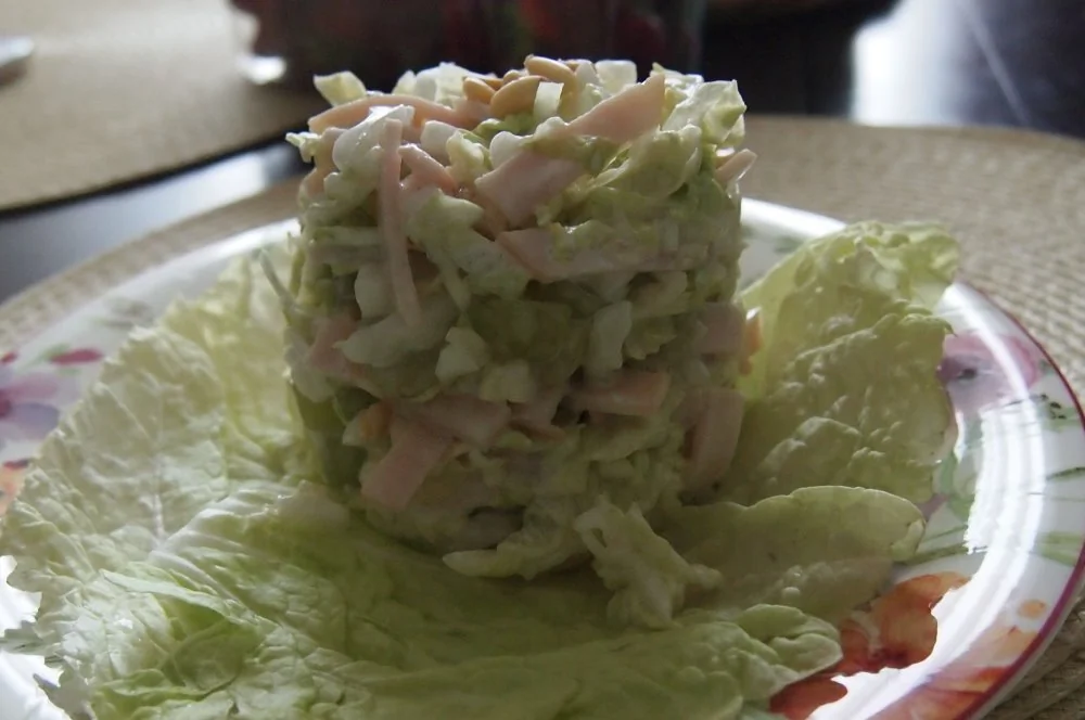 ШАГ 1 Китайскую капусту (половина) сполоснуть и покрошить.