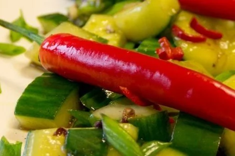 Ингредиенты для приготовления Огуречный салат с красным чилийским перцем: