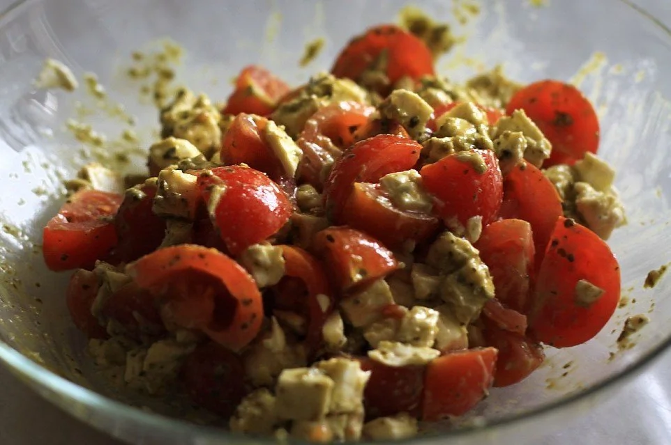 ШАГ 2 Порезать помидорки черри на 4 части.