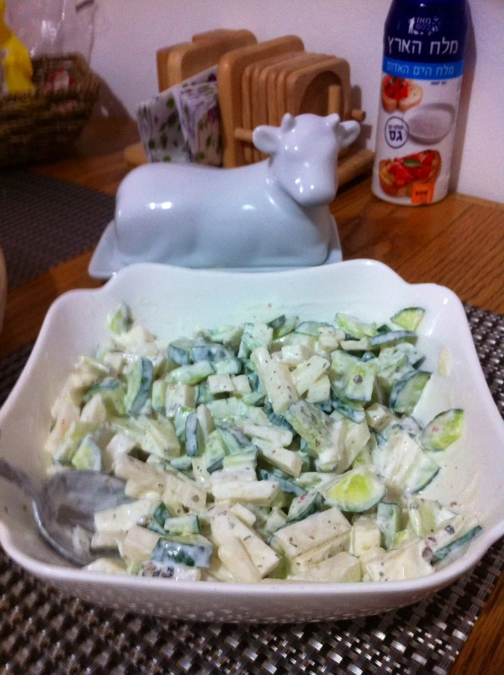 ШАГ 4 Салат заправляем йогуртом и солим.