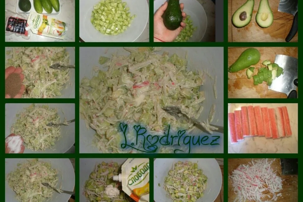 Ингредиенты для приготовления Салат из авокадо с крабовыми палочками: