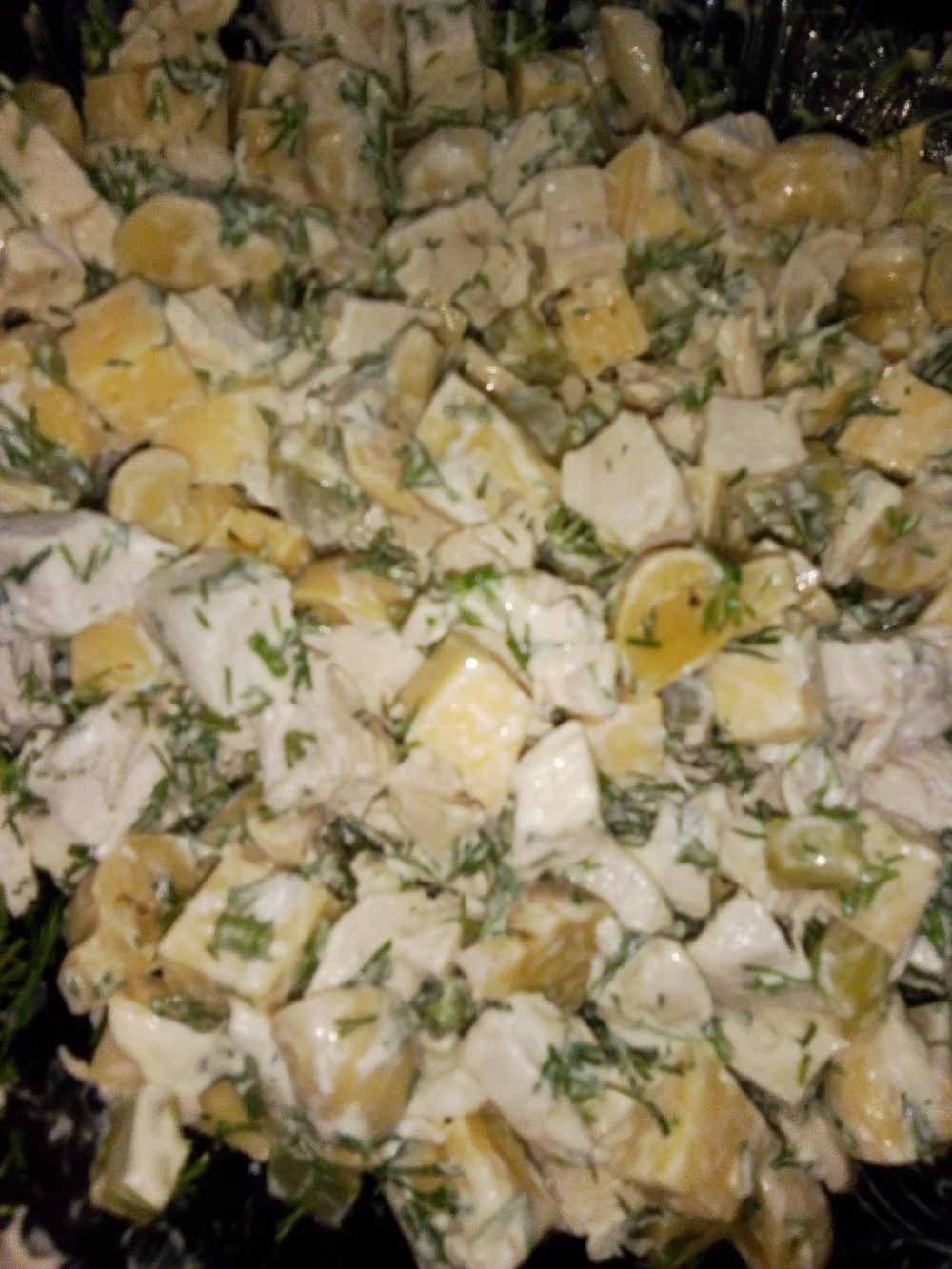 Ингредиенты для приготовления Куриный салат с маринованными грибами и сыром: