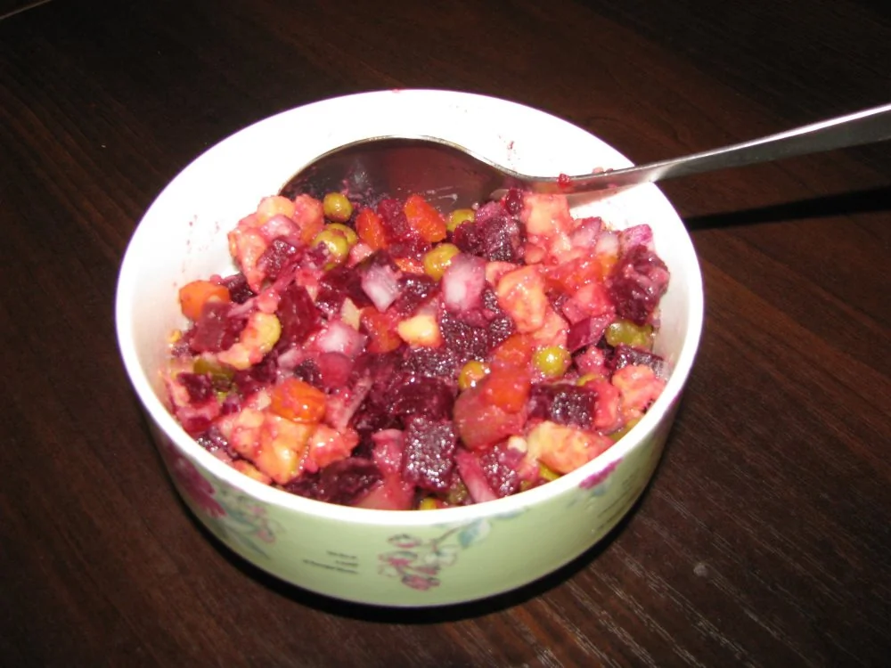 ШАГ 6 Во вторую миску свеклу и остаток заправки. Перемешать и оставить на 5–10 минут.