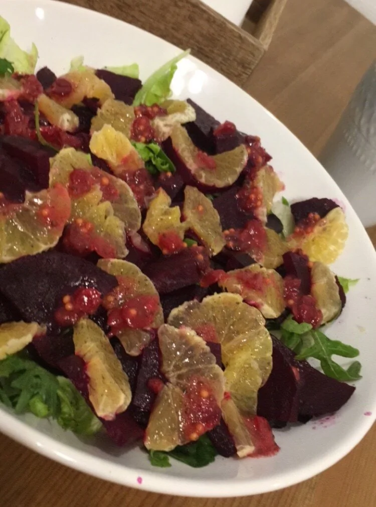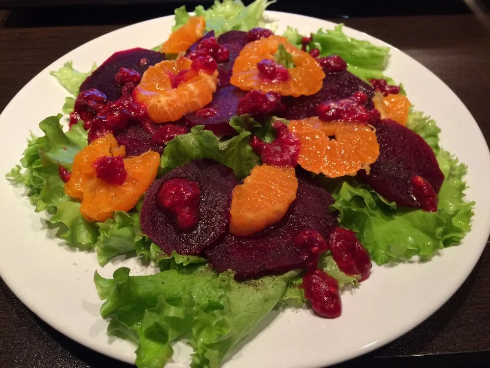 Салат из свеклы и мандаринов с клюквенной заправкой