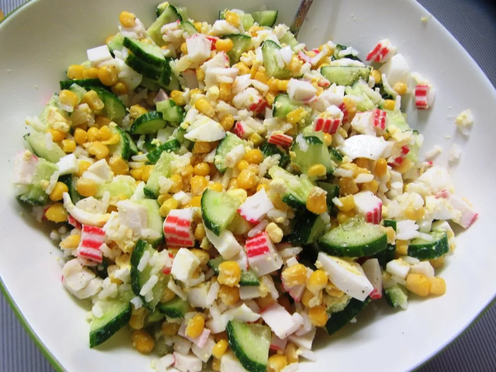 Классический крабовый салат с огурцом