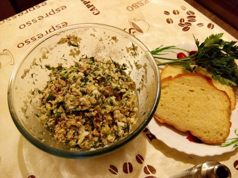 Салат с печенью трески