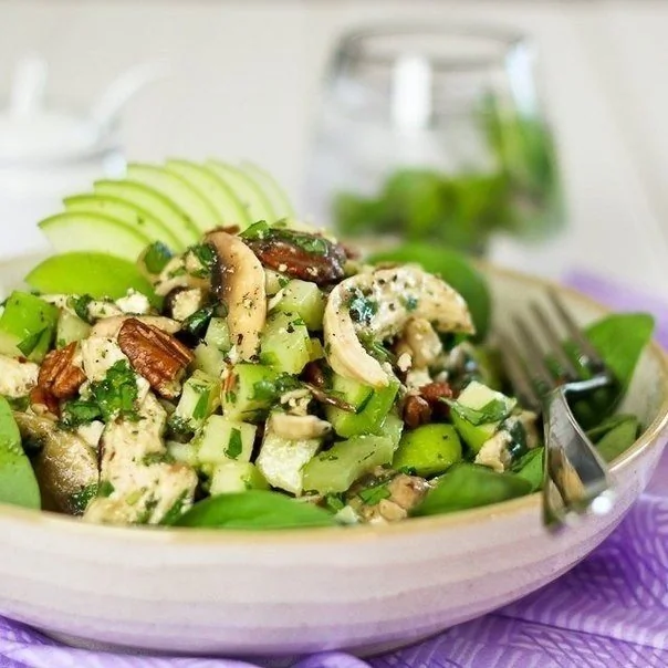 Салат с курицей, зеленым яблоком и фетой
