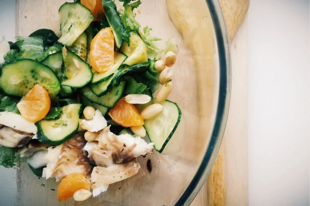 Салат с треской, мандаринами и заправкой из уксуса с манго