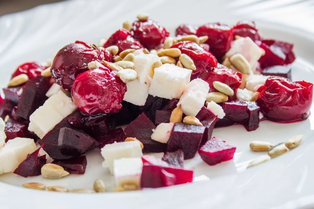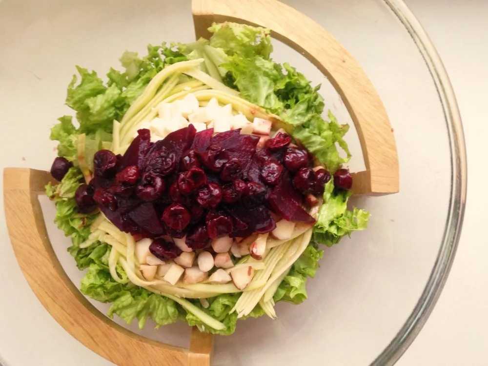 Салат со свеклой, вишней, сыром и орехами