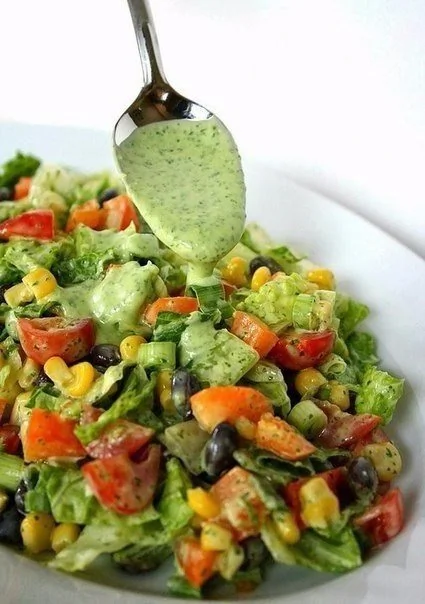 Овощной фитнес-салат с соусом из авокадо
