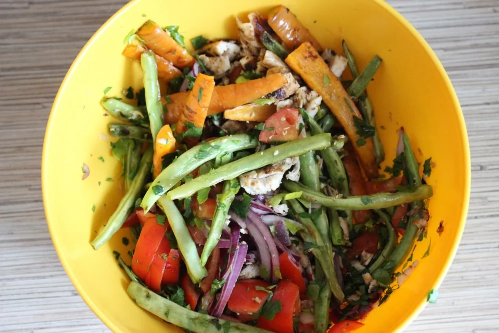Ингредиенты для приготовления Теплый салат с курицей и овощами на гриле: