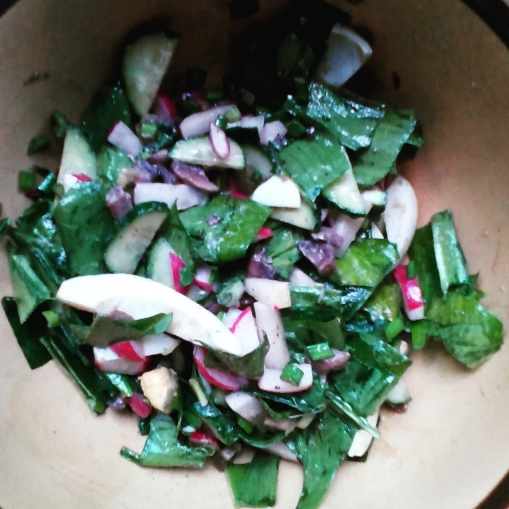 ШАГ 1 Листья черемши порвать на средние кусочки.