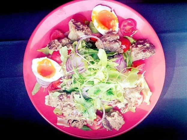 ШАГ 9 Благодаря сливкам печень тает во рту и все это в сочетании свежести салатных листьев и черри, а оливковое масло в сочетании с бальзамическим укчусом просто идеально связывает все ингредиенты.