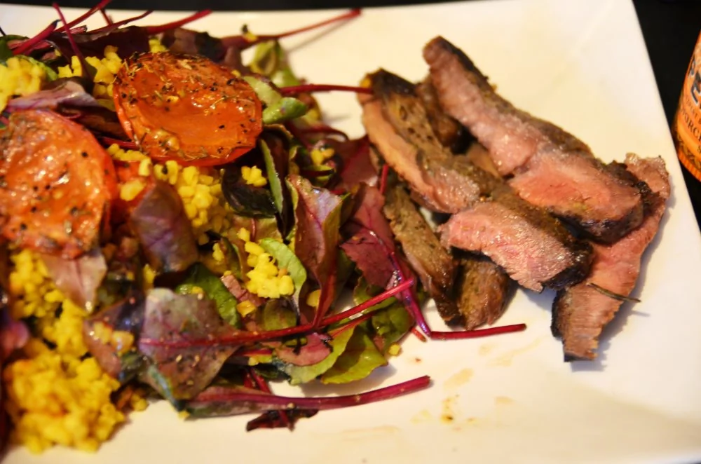 ШАГ 6 Если салат настоится минут 10, все вкусы смешаются, листья и булгур пропитаются соком печёных помидоров и бальзамиком, то вкус станет невероятно хорош! Я решила подать этот чудесный салат в качестве гарнира к стейку средней прожарки. Но и как самостоятельное блюдо он подходит не меньше.