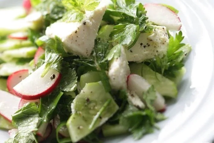 Ингредиенты для приготовления Летний салат с фетой и зеленью: