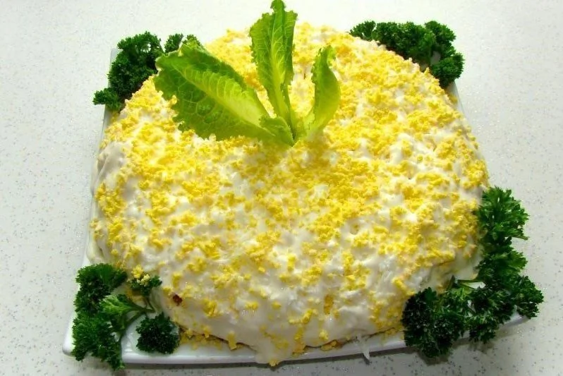 Салат «Мимоза» с сайрой