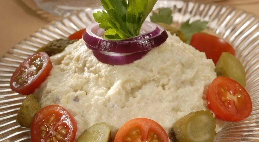 ШАГ 7 Положить приготовленный форшмак в пластиковый контейнер, накрыть и поставить в холодильник. За 1 час до подачи на стол переложить в салатницу.