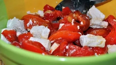 ШАГ 1 Запечь 4 крупных красных болгарских перца в духовке (15-20 минут), пока они слегка не подгорят.
