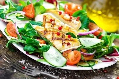 Куриный салат с помидорами и огурцами