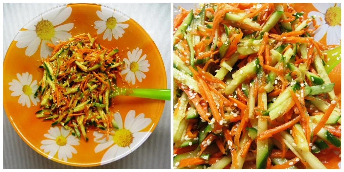 Ингредиенты для приготовления Салат с морковью, огурцами и имбирем: