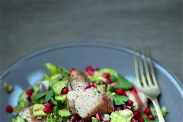 Салат из цесарки с авокадо и зернами граната