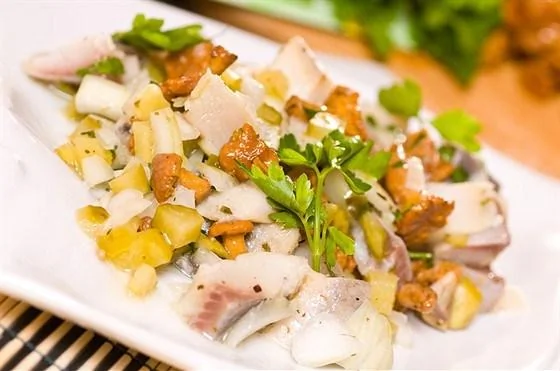 Салат грибной с сельдью