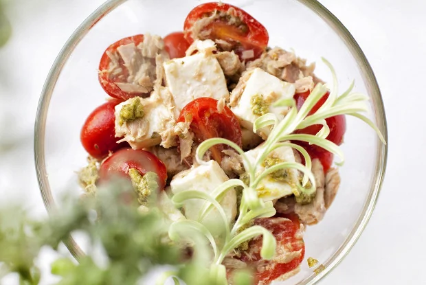 Ингредиенты для приготовления Салат из тунца и адыгейского сыра с соусом песто: