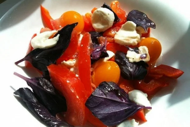 Салат со сладким перцем, базиликом и моцареллой