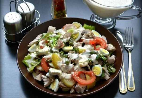 Ингредиенты для приготовления Теплый овощной салат со сливочным соусом: