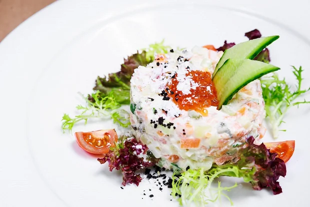 Ингредиенты для приготовления Салат оливье с лососем от ресторана: