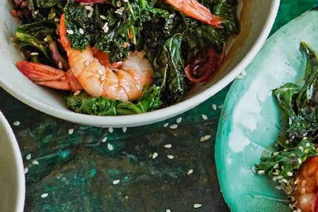 Ингредиенты для приготовления Пряный салат из кудрявой капусты с креветками: