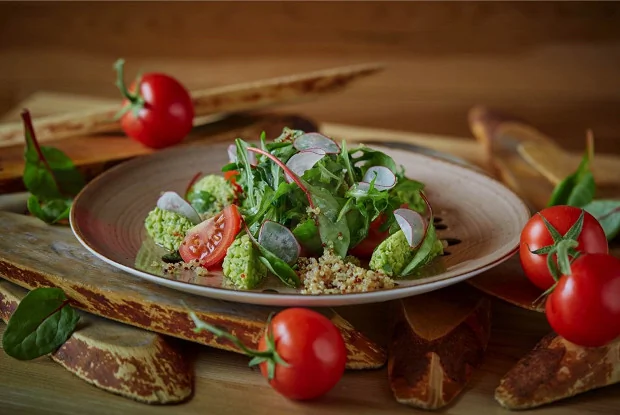 Салат с гуакамоле из авокадо с киноа и сладкими томатами