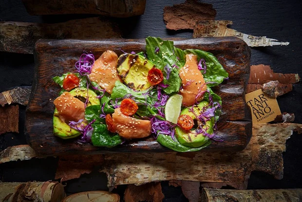 Салат с лососем и печеным авокадо