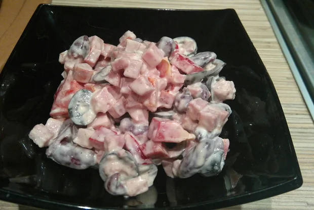 Салат с ветчиной, сладким перцем и красной фасолью