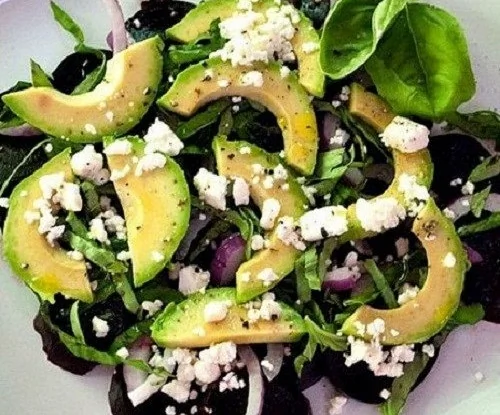 Салат со свеклой, авокадо, сыром фета и базиликом