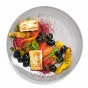 ШАГ 5 На тарелку выложить жареный сыр, рядом смесь из перцев и маслин, посыпать сумахом, украсить соцветиями укропа и мяты.