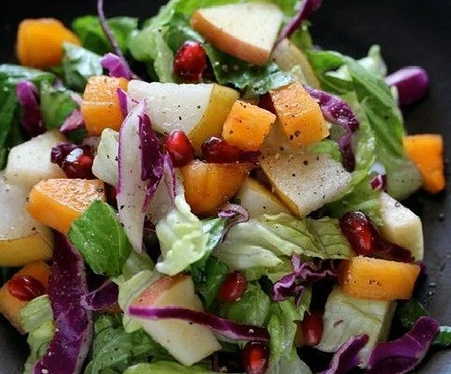 ШАГ 2 Гранат почистить, яблоко, грушу, капусту нарезать.