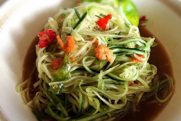 ШАГ 5 В салатник положить свежие огурцы с редькой, полить уксусом, соевым соусом, добавить сахар и хорошенько перемешать. Затем к ним добавить соленые огурцы, острое масло с чили и кунжутное.