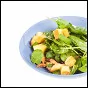 ШАГ 4 Выложить на тарелку листья шпината, на них кусочки ананаса, курицу с соусом и сухари, посыпать кунжутом.