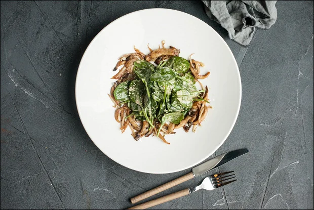 Ингредиенты для приготовления Теплый салат со шпинатом и вешенками: