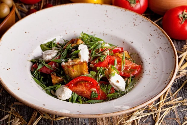 Салат с хрустящими баклажанами