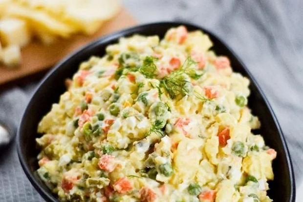 ШАГ 3 Заправить салат майонезным соусом, добавить нарубленный укроп и перемешать.