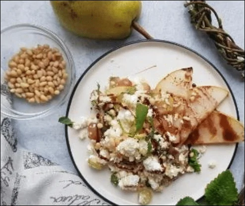 Салат с кускусом, грушами, виноградом, мятой и кедровыми орехами
