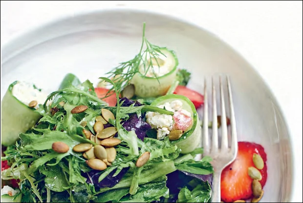 Ингредиенты для приготовления Салат с роллами из огурцов и клубникой: