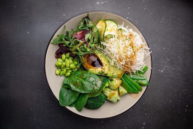 Зеленый салат с авокадо и эдамамэ