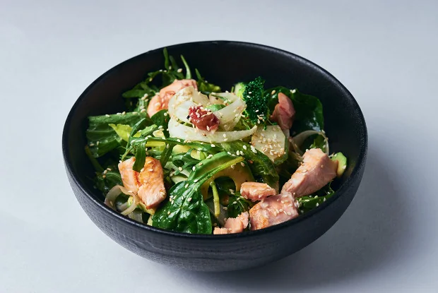 ШАГ 5 Добавить в салат 30 мл заправки и тщательно перемешать.