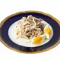 ШАГ 5 Смешать мясо, дайкон и лук с майонезом, посолить, если это необходимо. Подавать с вареными яйцами.