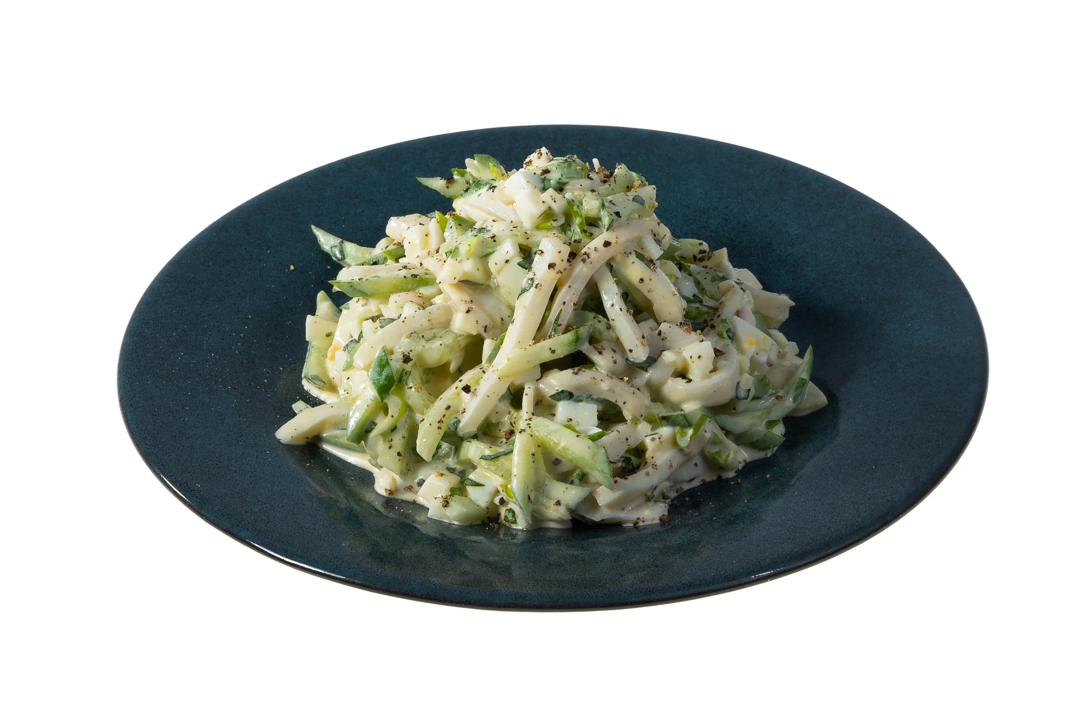 ШАГ 4 Обсушить кальмары бумажным полотенцем и нарезать их соломкой.
