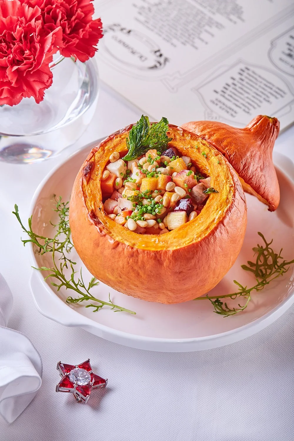 ШАГ 3 Заправить салат. Подавать в тарелке или в печеной тыкве.